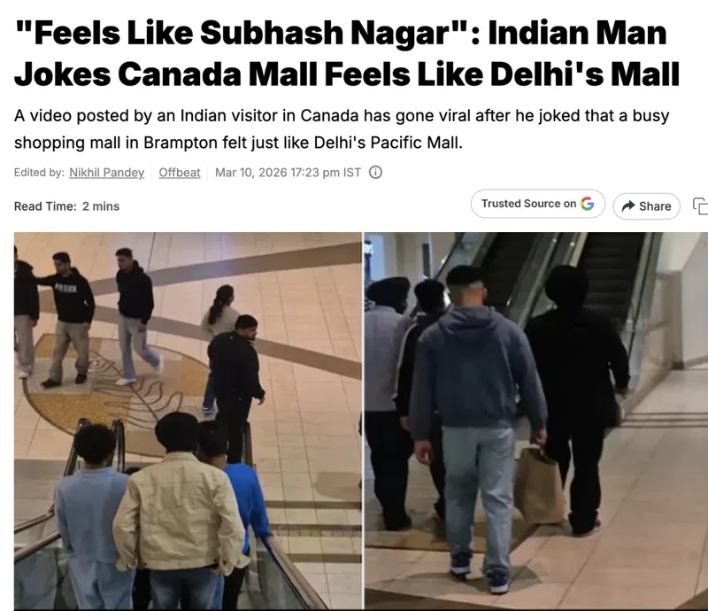 据报道,这段视频由Instagram用户 Shiv Swaroop 发布。他在视频中走在加拿大 Brampton 一家热闹的购物中心里,一边拍摄周围的人群,一边表达自己的惊讶。