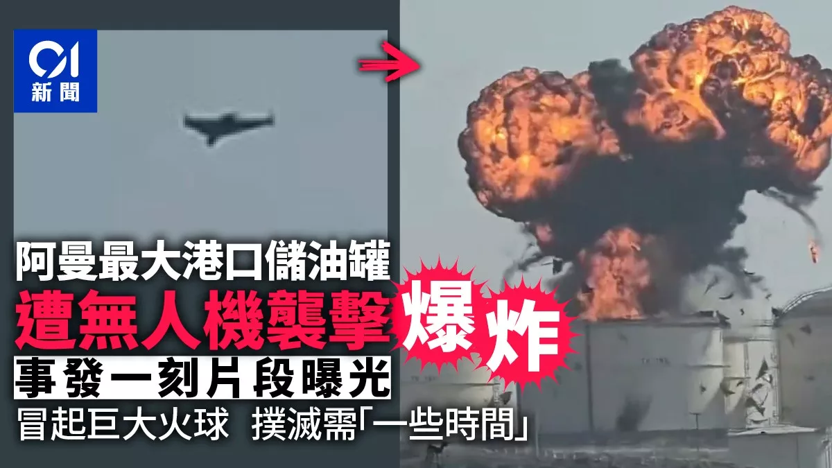 无人机袭阿曼港口储油罐 急速撞击后爆巨大火球