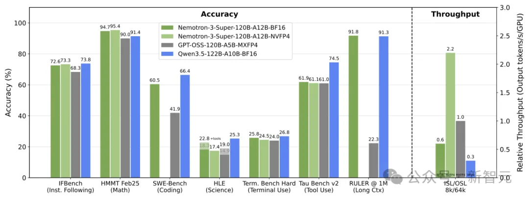 与GPT-OSS-120B、Qwen3.5-122B对比,Nemotron 3 Super均拿下了最高成绩。