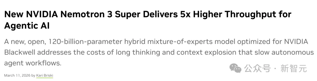 为此,英伟达开源的Nemotron 3 Super,彻底击碎了Agent应用的「两大枷锁」。