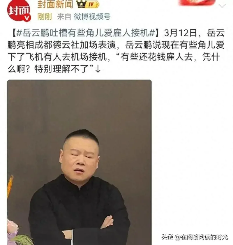 事情的起因,是岳云鹏在成都德云社加场表演时,直接把矛头指向了有些同行“雇人接机”这一让人摸不着头脑的操作。他直言:“下了飞机就有人围,有些还花钱雇人去,凭什么啊?特别理解不了!”我反复观看了那段现场视频,台下的观众被逗得哈哈大笑,可岳云鹏却一脸严肃,语气直白得如同白开水,没有丝毫的迂回与掩饰。表演结束后,后台有人小声嘀咕,说这话难免会得罪人,但不得不说,岳云鹏这番话可真是说到了点子上。