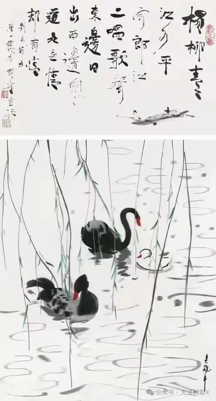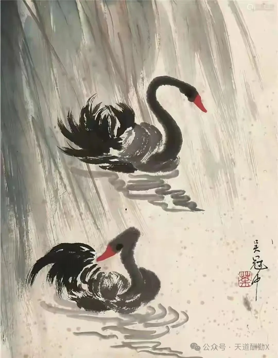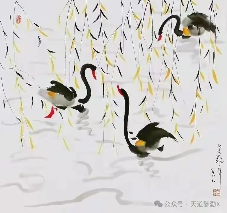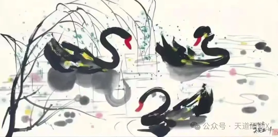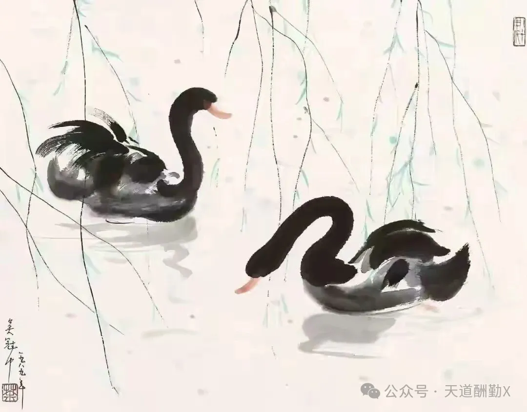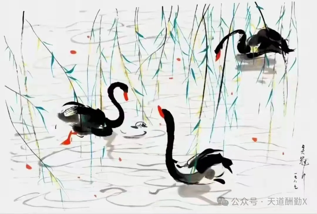 在20世纪中国美术史的星空中,吴冠中先生以“油画民族化、水墨现代化”的执着探索,为传统艺术开辟了崭新航道。创作于1989年的水墨画《黑天鹅》,正是其艺术鼎盛时期的经典之作——寥寥数笔勾勒出的生灵,既是自然意趣的凝练,更是中西美学碰撞的璀璨火花,藏着一代宗师对艺术本质的深刻追问。