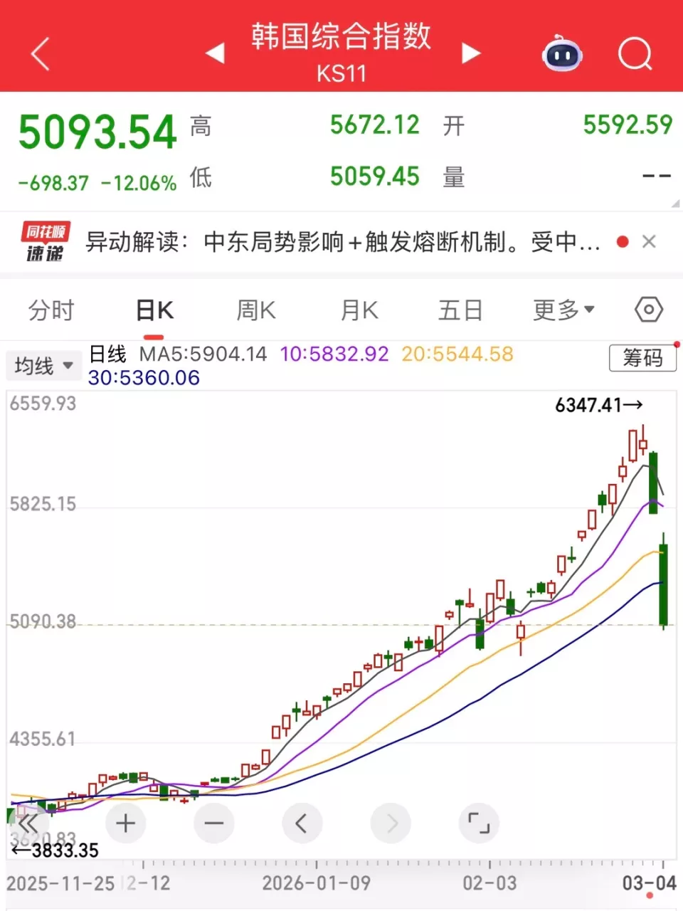 近几日,国际油价单日暴涨超过18%,亚太股市集体震荡,日本股市一度跌超6%,韩国股市跌近7%。