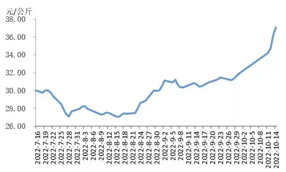 到了2022年10月,生猪价格一度较年初翻了一番。