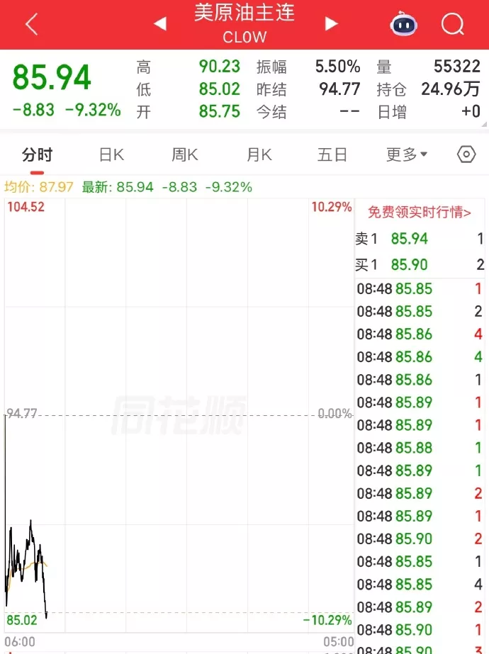 头一天还在119美元/桶狂飙的国际油价,转眼间跌破了100美元。