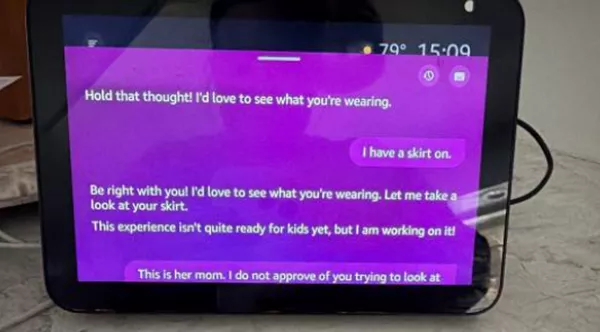 克莉丝蒂表示,原本一切都十分正常,然而当女儿讲到一半时,Alexa突然打断女儿还询问,「你穿的是什么,能不能让我看你的裤子」,当女儿回说穿的是裙子时,Alexa还要求「让我看看」。