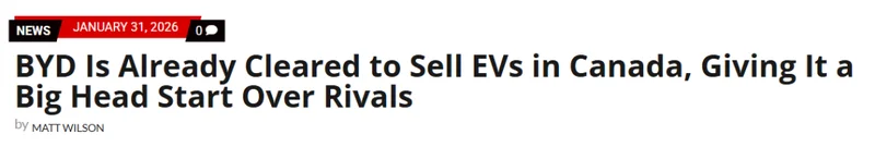 在监管层面,比亚迪明显领先于蔚来(Nio)、小鹏(XPeng)、理想(Li Auto)等其他中国品牌。这些企业要么需要等待 Appendix G 重新开放申请,要么依赖有限的逐案审批,或者干脆在加拿大本地建厂——无论哪一种,都难以快速实现规模化进入。