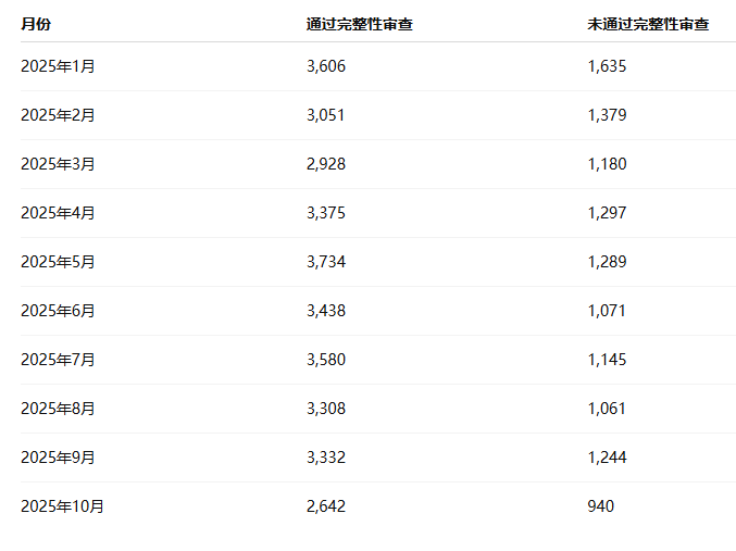 2025年完整性审查通过与失败情况