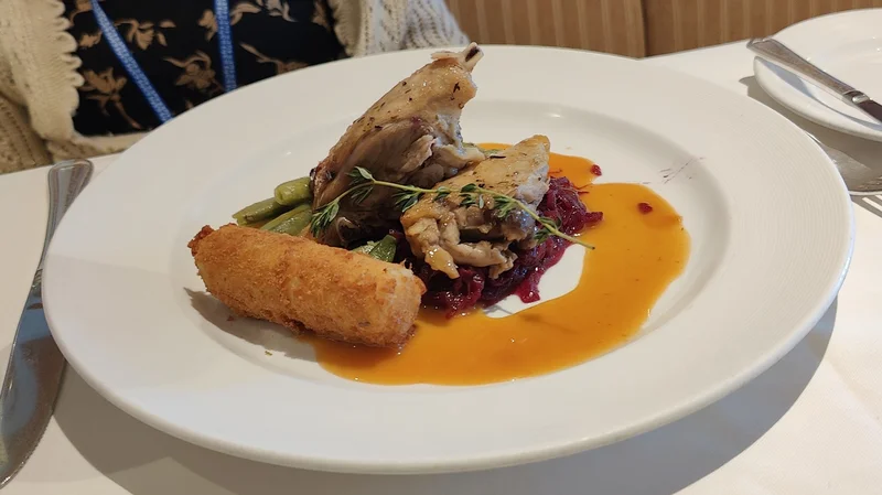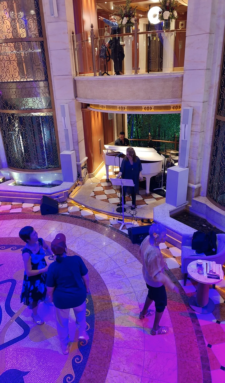 今天的晚餐是正装(formal night)。米国佬农民,不像大英帝国的煎透馒(gentlemen),西装领带甚至燕尾服。公主游轮公司的解释就是男的休闲外套或运动外套(sports coat)即可,领带爱打不打,至少请穿有领子的衬衫。