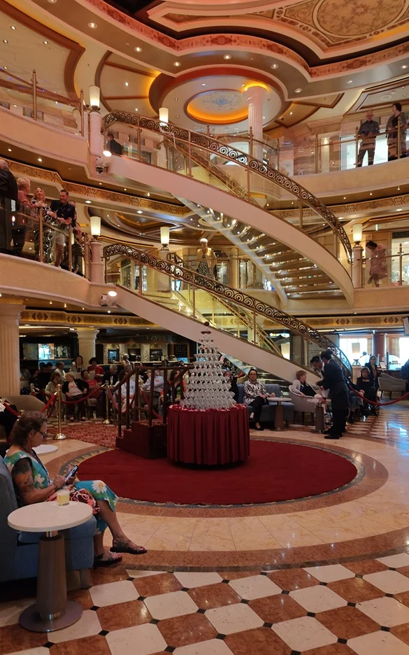 我们的海景房和米开朗琪罗餐厅在同一层,不远。途中经过游轮中心小广场(Piazza):