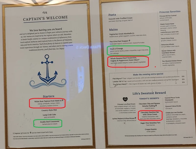 餐单上有船长的欢迎辞(Captain’s Welcome):