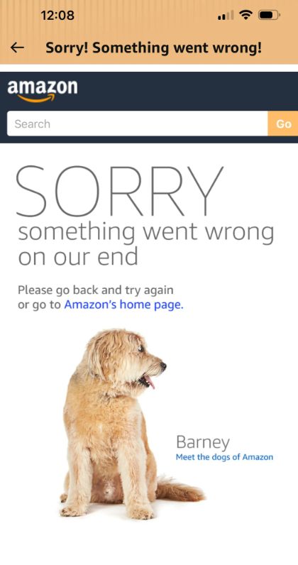 如果你在三月 5 号左右的凌晨,打开亚马逊,可能会怀疑自己输错了网址——满屏都是各种小狗图,和巨大的「Sorry」。