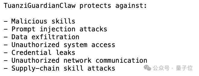 它的防护范围覆盖系统、用户与数据,能够抵御恶意技能、提示词注入、数据泄露与不安全操作。