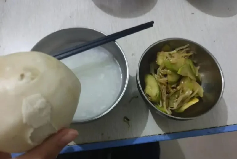 他们表示,米汤配蔬菜是他们当地的饮食习俗,他们日常就是这么吃的。
