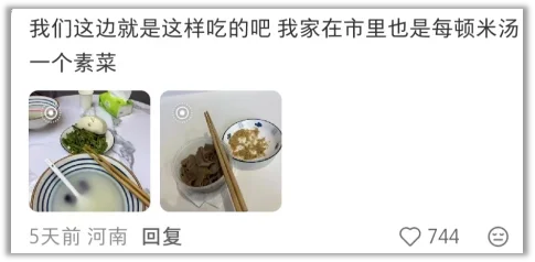 这样的餐食在河南、河北很正常,当地人对此习以为常,并不会觉得苦。