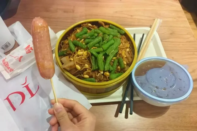 那天,她不仅吃到了一大碗主食,还吃到了蔬菜、烤肠和例汤。