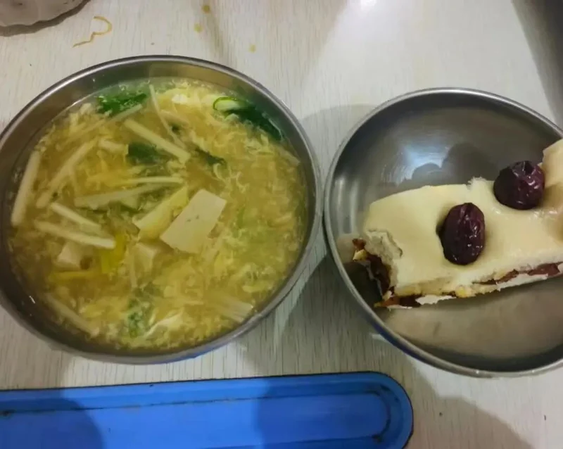 巧的话,还能吃到红枣发糕和豆腐蛋花汤: