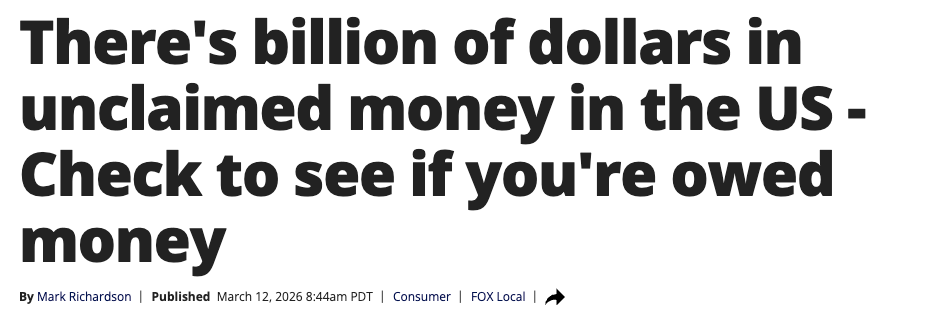 美国大约每7人中就有1人拥有尚未认领的现金或财产。
