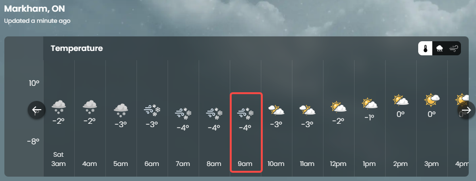 随着气温升高,今天下午降雪将逐渐减弱,并转为阵雨。但气象部门提醒,夜间气温曾降至冰点以下,路面和人行道可能结冰。因此今天仍可能出现路面打滑,交通事故风险增加,行人滑倒。虽然今天多伦多最高气温约3°C,但早晨体感温度接近-8°C。冬天似乎还没有完全离开。