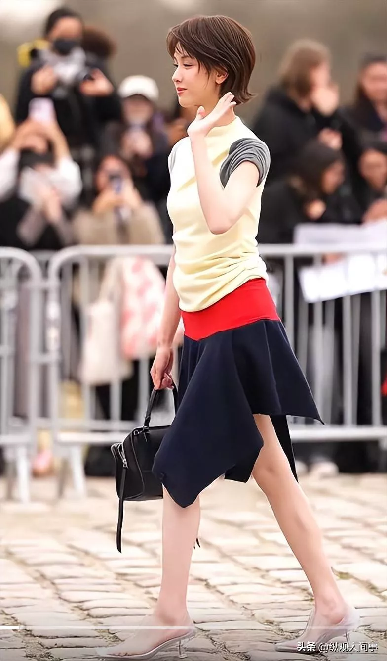 利落的短发也与她的气质格格不入,硬生生将原本温婉的她衬得土气十足,完全没有了时尚秀场该有的精致感。