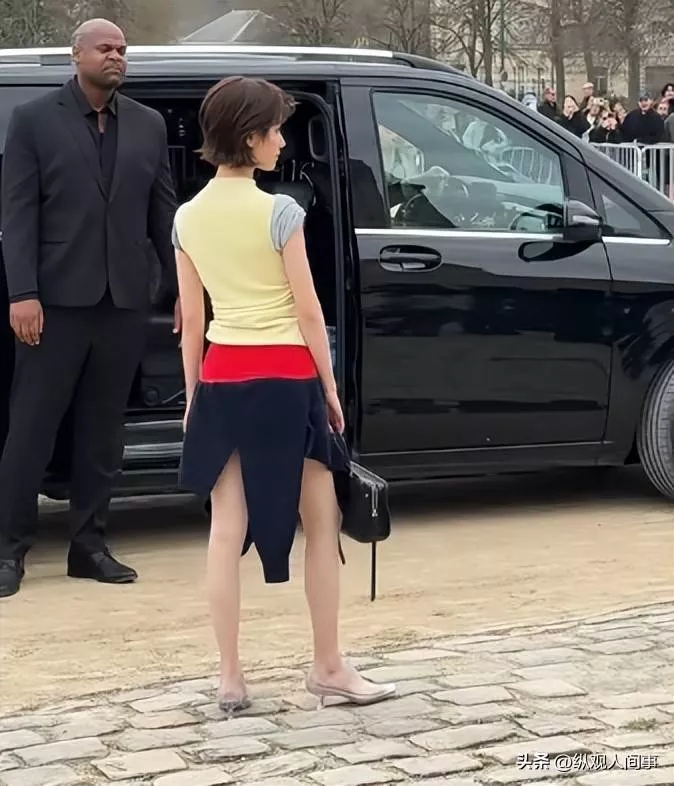 原本被寄予厚望的穿搭,在糟糕的比例面前显得毫无章法,尤其是露出的大腿部分,线条粗壮毫无美感,与时尚秀场的精致氛围格格不入。