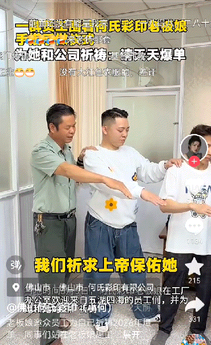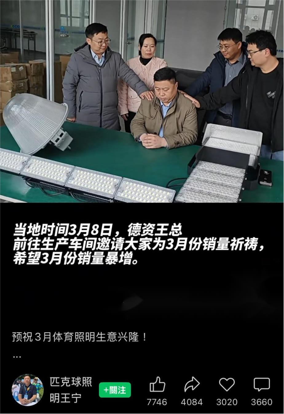 做灯具的老板,带着四个员工把手搭在他肩上,众人齐齐祈祷这个月销量暴涨。