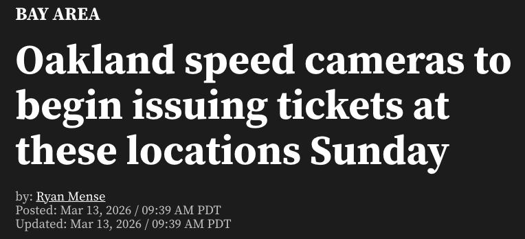 值得注意的是,旧金山湾区此前安装的测速摄像头已自去年夏季起正式开始开具罚单。
