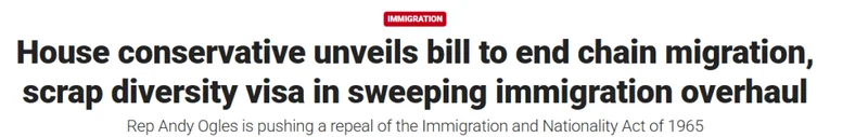 该法案还计划推翻部分Immigration and Nationality Act of 1965(1965年移民与国籍法)。这项法律也被称为 Hart-Celler Act,是美国移民史上的重要转折点。
