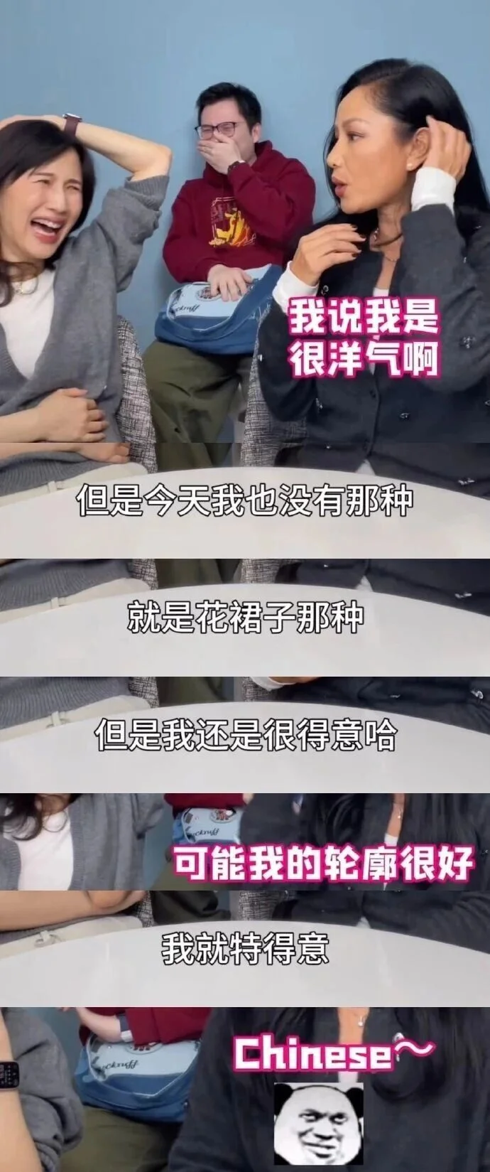 节目里,瞿颖自曝一段超接地气的英文小插曲:在泰国买菜将“菠菜(spinach)”误听成“西班牙人(Spanish)”,心里还暗自得意以为对方在夸自己“洋气”,立马骄傲地回应“中国人(Chinese)”。