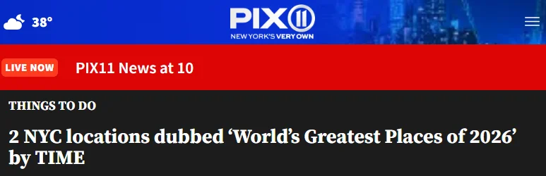 2026世界最佳目的地,纽约两地上榜pix11新闻
