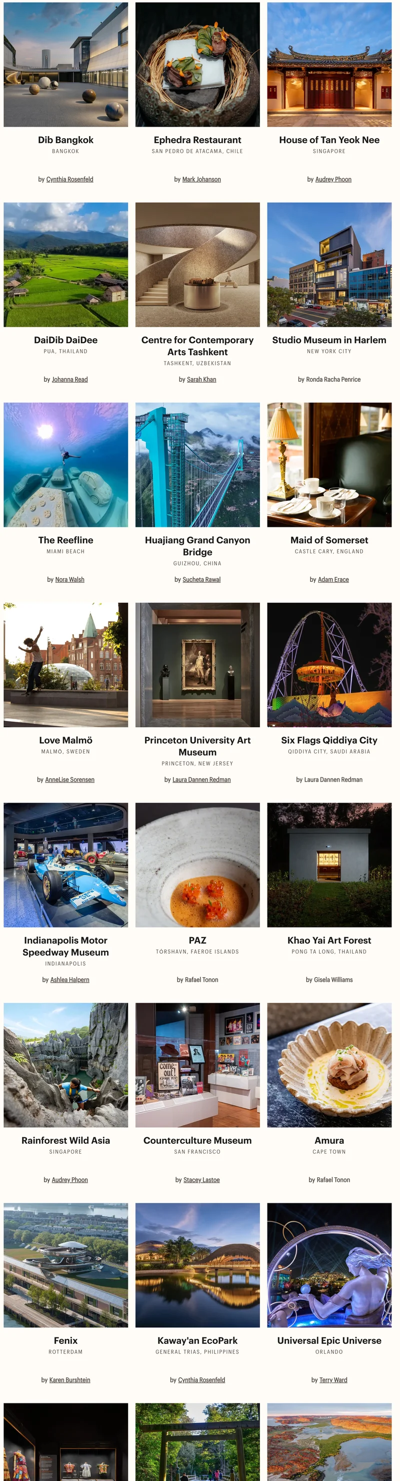 《时代》杂志的编辑表示:“诚然,旅行趋势瞬息万变,全球性事件亦能重塑行程规划,但探索世界的渴望历久弥新。旅行的真谛在于搭建桥梁——让我们有机会邂逅异域文化,以开放姿态迎接八方来客,最终发现那些陌生的事物竟能奇妙地让人感到如此熟悉。”