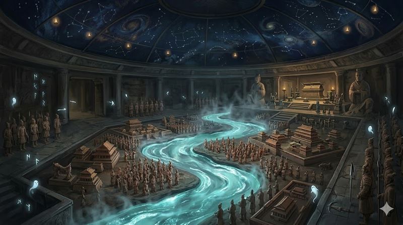 这项数据强烈暗示,地宫内确实灌注了惊人份量的液态水银。 水银不仅能模拟江河大海流动的景象,其挥发出的剧毒汞蒸气,更在地宫这个密闭空间内形成了无形的杀阵。 若有人在无防护状态下进入,剧毒气体可能在极短时间内夺走生命,让这座地宫成为名副其实的地下禁区。