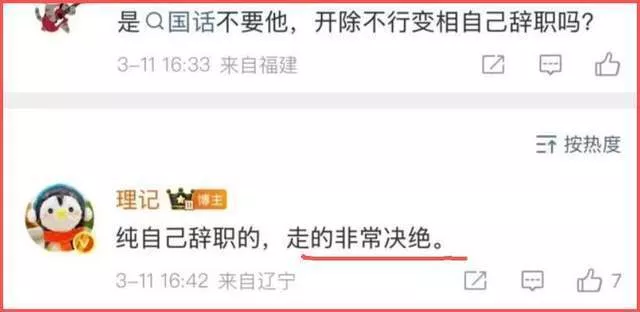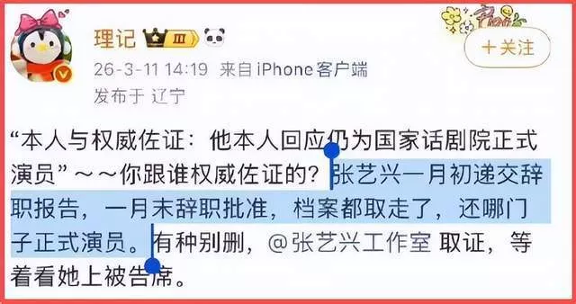 理记的原话是,张艺兴“冲动辞职,档案已撤,脱离编制” 。