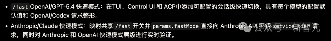 顺应 OpenAI 最近刚发的 GPT-5.4,3.12 版本火速在会话层加了 Fast Mode 开关。