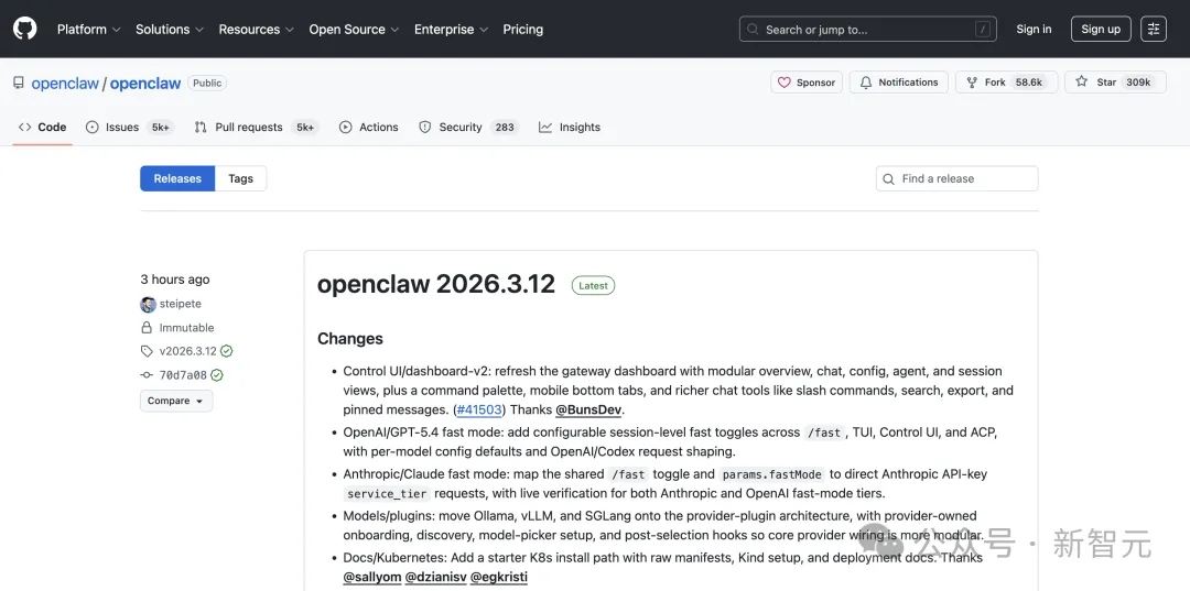 这两天 OpenClaw 的代码库相当热闹,昨天刚推了 2026.3.11,今天下午直接又刷了个 2026.3.12 出来。