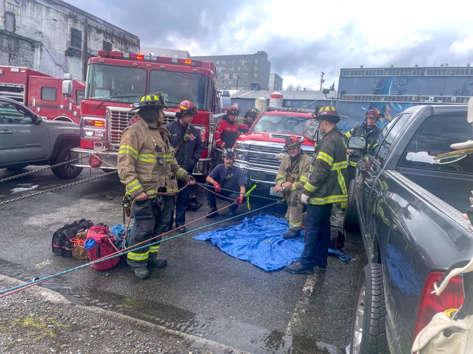 塔科马消防局的技术救援队(Technical Rescue Team)接到报警后迅速赶到现场,面对这一极其危险的局面展开了营救。