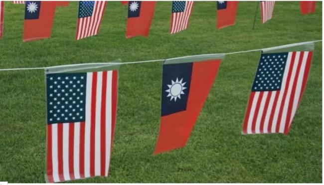 图为加州橘郡侨胞庆祝双十国庆,在加州尔湾(Irvine)市政府草坪上布置中华民国国旗与美国国旗。示意图(图片来源:中央社)