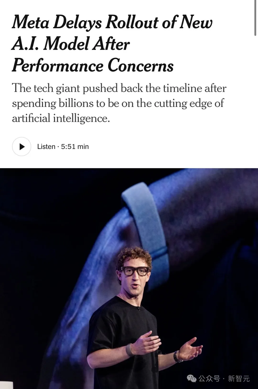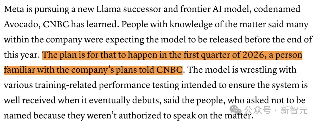 刚刚,《纽约时报》援引三位内部知情人士消息:Meta的AI模型「牛油果」(Avocado)延期了。