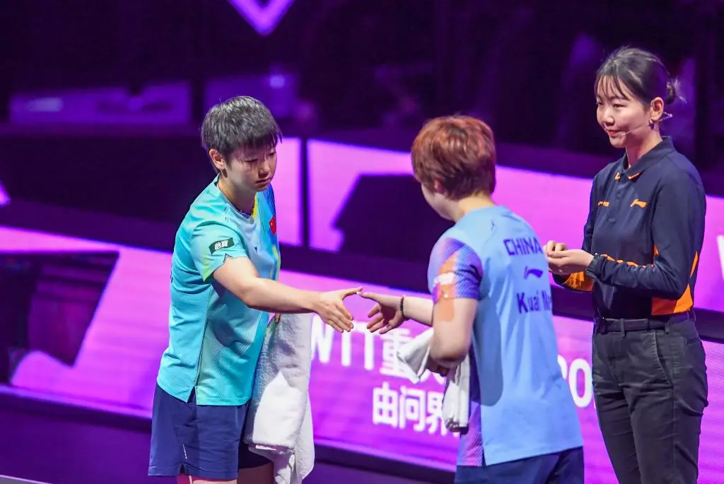 当天下午进行的女单四分之一决赛中,孙颖莎以2:4不敌队友蒯曼。首局,孙颖莎以11:6轻取对手。第二局,蒯曼以11:7扳回一城。第三局,4:8落后的孙颖莎追至9平,双方缠斗至14平后,蒯曼以16:14拿下。第四局,蒯曼以11:7拿下。第五局,孙颖莎以11:9胜出,将大比分追至2:3。第六局,蒯曼以11:2获得最后胜利。