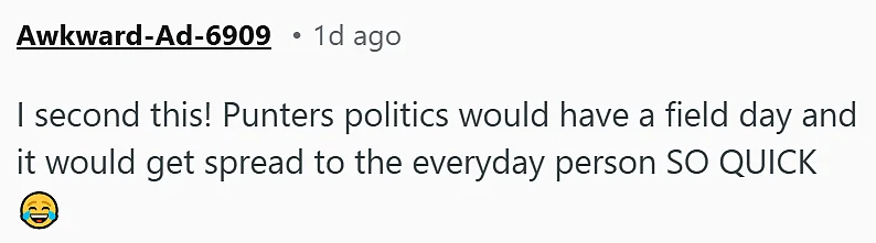 “我支持!Punters Politics一定会把这事玩明白,而且消息会传播得特别快。”