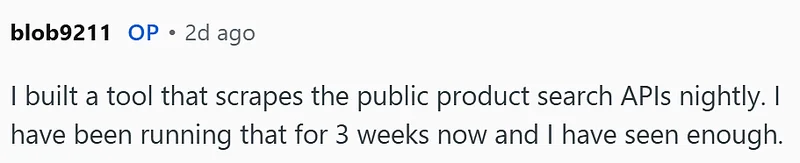 这位发帖网友随后回复说,自己做的工具目前是每晚自动抓取一次数据,已经连续运行了3周。