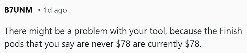 还有网友指出,楼主的追踪工具显示的价格可能有问题。比如有人说,那个82片装Finish洗碗块,自己现在看页面上明明就是78澳元,说明并不是一直39澳元。