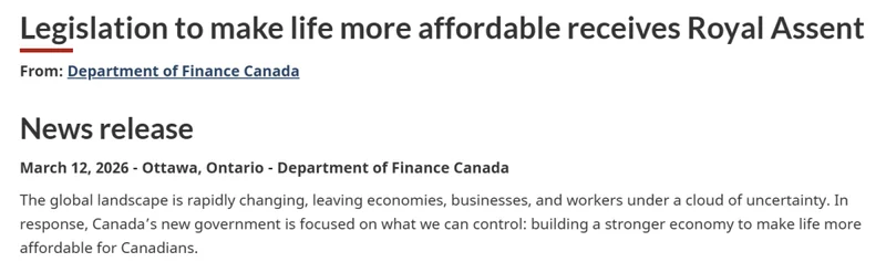联邦政府周四宣布,C-4 法案《让加拿大人生活更可负担法》已正式获得御准。该法案把多项减轻生活成本的措施写入法律,预计每年可为加拿大人节省数百加元。