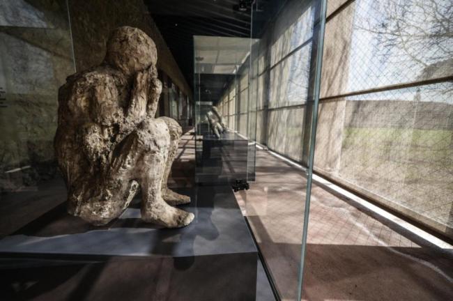 火山爆发时,庞贝近2万名居民中有一些人有时间逃离现场,因为维苏威火山在18个小时内只向城市投下了小浮石。自这场环境灾难发生以来,已发现约1000名居民的遗骸,其中大多数人因待在室内,当浮石变成令人窒息的火山灰时遇难。考古学家蒂齐亚娜・罗科在成为首批参观展览的人之一后告诉《泰晤士报》:“我在庞贝工作了20多年,这些描绘痛苦和死亡的石膏铸像带给我的情感冲击从未消减。”
