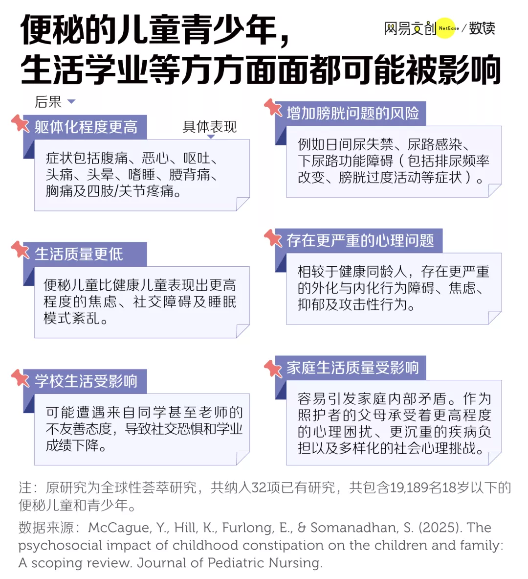 爱尔兰都柏林大学一项包含中国样本的综述研究指出,便秘青少年的躯体化表现更明显,除了腹部胀痛,还常伴有恶心、呕吐或头晕 [9]。