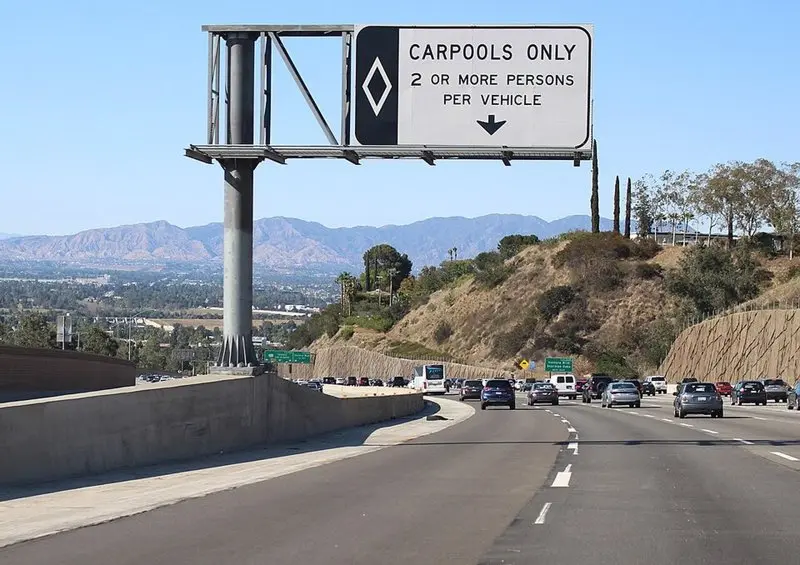 在加州的高速公路上,当局为了减少交通壅堵、节约燃料等的道路效率目的,设置了「共乘专用车道」(carpool lane),但必须符合多项法规条件,例如汽车内乘客人数须达二人或以上,才可使用,违规者可面临至少490美元的罚款。