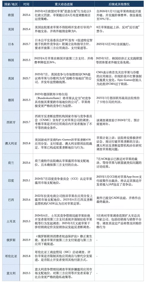 正因如此,全球范围内的“反苹果税”浪潮从未停歇。仅以 2025 年为例: