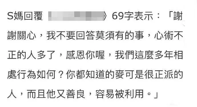 更绝的是徐妈,直接跳出来力挺女婿,说他“很正派的人,又善良,容易被利用”。
