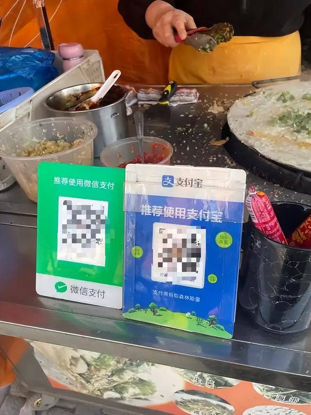北京胡同口,一个煎饼摊,老板娘围裙上别着个塑封二维码,手机支架夹在煤气罐旁边,伊桑掏出一张红色的百元加元,老板娘摆摆手,指了指那边的蓝绿二维码。