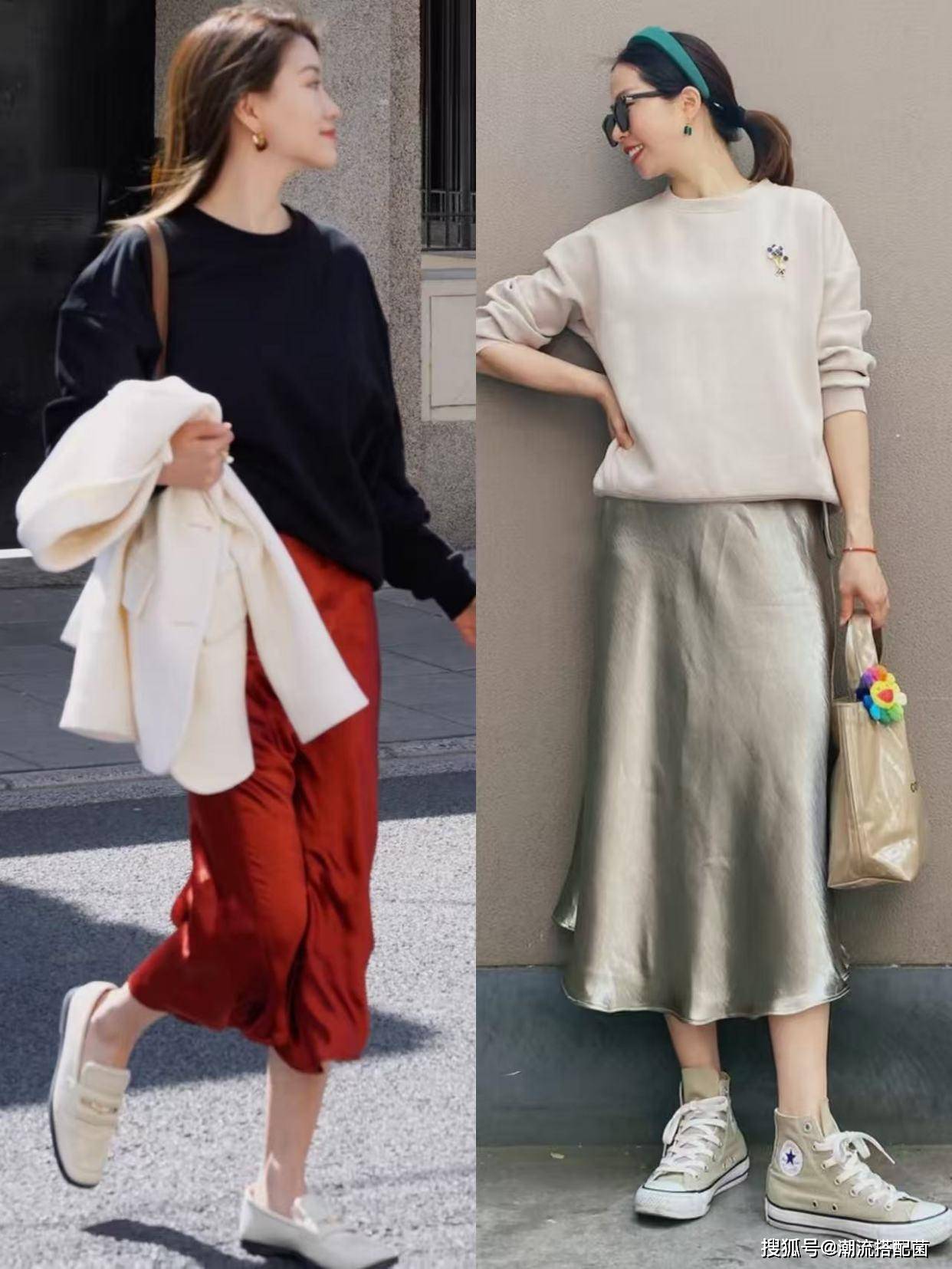 卫衣+缎面裙